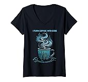 Womens I Turn Coffee Into Code Cool Developer Design for Programmer V-Neck T-Shirt