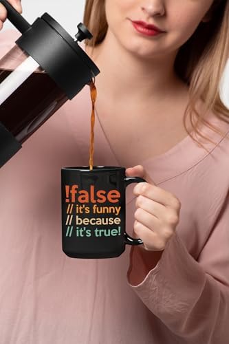 False, It's Funny Because It's True - Computer Programming Language or Programmer Code, Black 15oz Ceramic Mug
