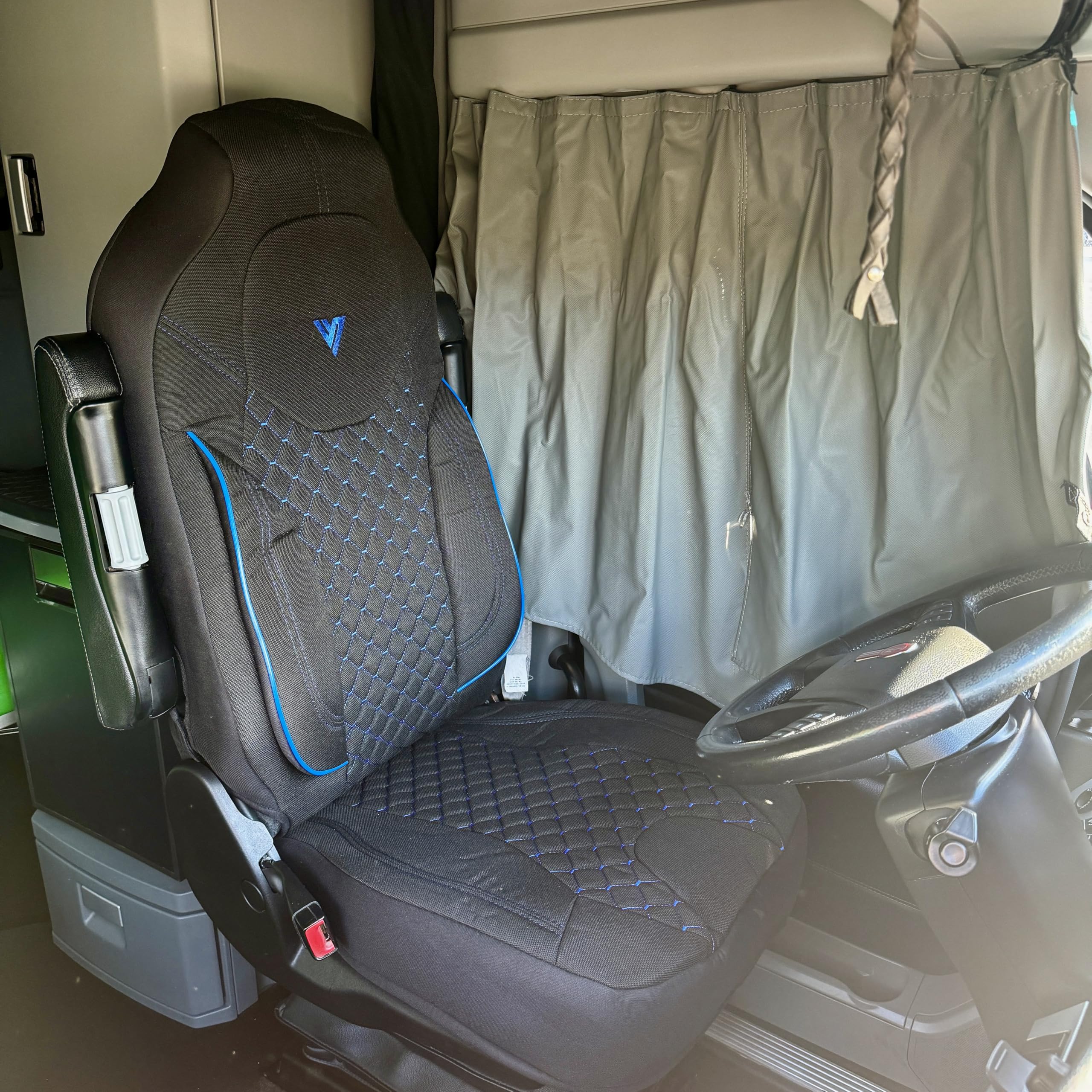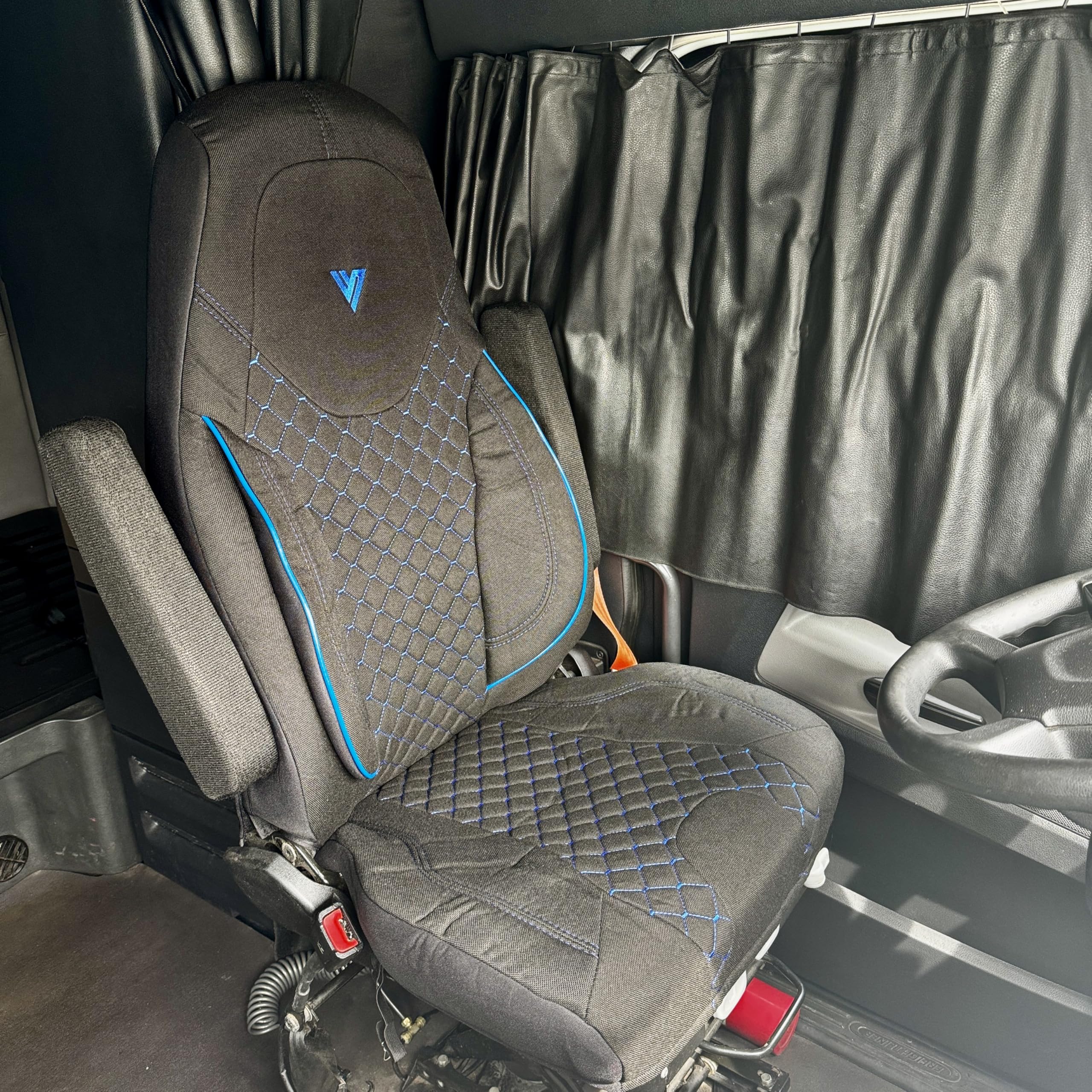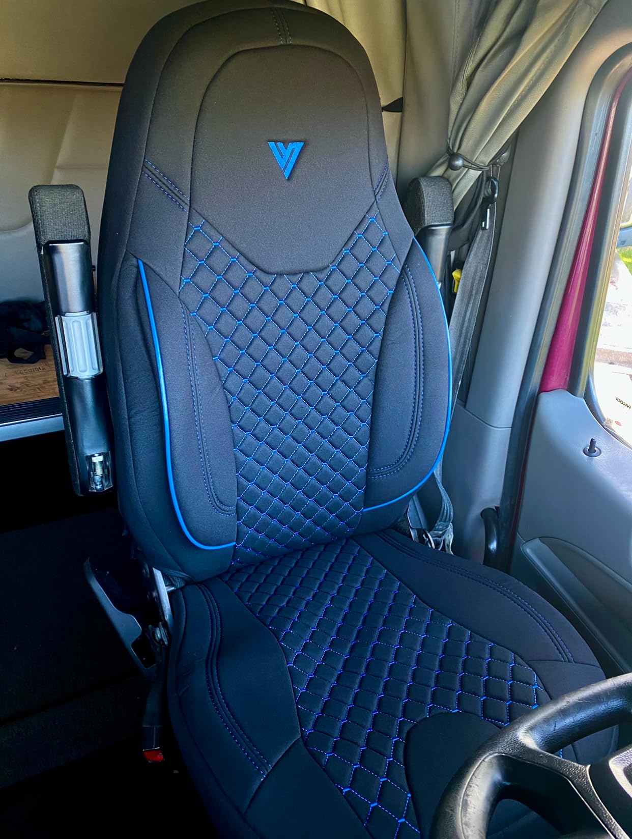 Seat Cover – Compatible with Kenworth T680, T880 & W990 OEM Stock Seats – Durable, Custom Fit, Easy to Install (Black/Blue)