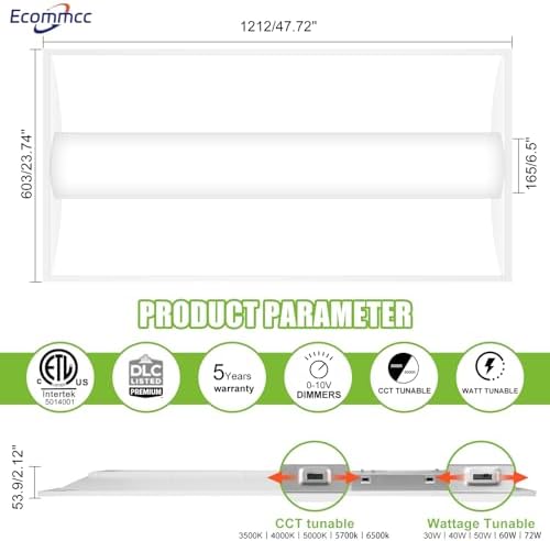 - High Efficiency Energy Savings: LED Troffer Light adopts high-efficiency optical design, delivering 125 lm/W efficacy and 6,500 lumens output to significantly reduce energy consumption. With a lifespan exceeding 50,000 hours, it supports 0-10V dimming for flexible brightness control