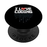 I Love Coding Heart Binary Humor Design PopSockets Adhesive PopGrip