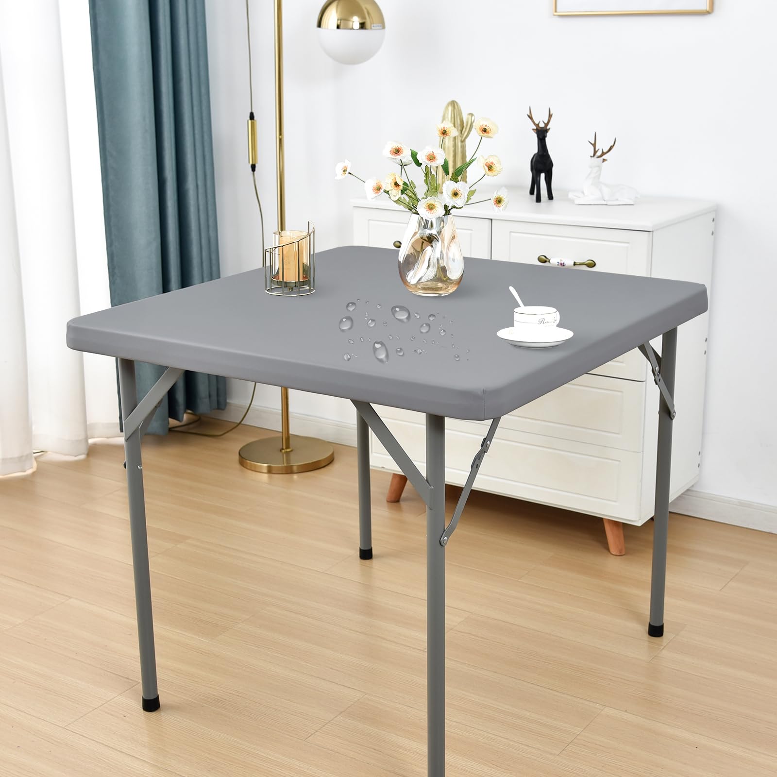 Polyester Repeatedly Usable and Tear-Resistant: This fitted tablecloth is crafted from excellent polyester material, which is sturdy, long-lasting, and rip-resistant. Fits 24x48 inch rectangle tabletops with recommended thickness under 2 inches Wind-Resistant and Anti-Slip Fitted Tablecloth: This tablecloth has elastic corners that grip the table firmly, reducing slippage. It stays put even on windy days. No chasing flying tablecloths-simply lay it on the table and enjoy your time Function: This rectangle fitted tablecloth can not only easily protect your tables from scratches and stains, but also its stylish design adds an aesthetic touch to your dining space, perfectly combining practicality and beauty Easy to Care For: Our fitted tablecloth is hassle-free to maintain. Machine-wash it. Then, tumble dry on low. If slight wrinkles appear, iron at low heat to smooth. Ideal for daily and special events, it's a convenient choice Multifunctional Tablecloth: Suits home dinners, park picnics, camping, and formal parties. Its simple design matches different decors, making it a versatile home item. Practical for casual and formal use