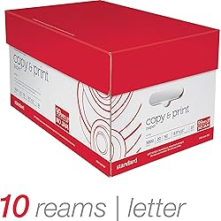 10 Reams/Case, 500 Pages/Ream - 5,000 Pages Total Sheet Size 8.5” x 11” Letter 92 brightness for sharp, clear text and images Weight - 20 lb (75 GSM) Acid-free paper