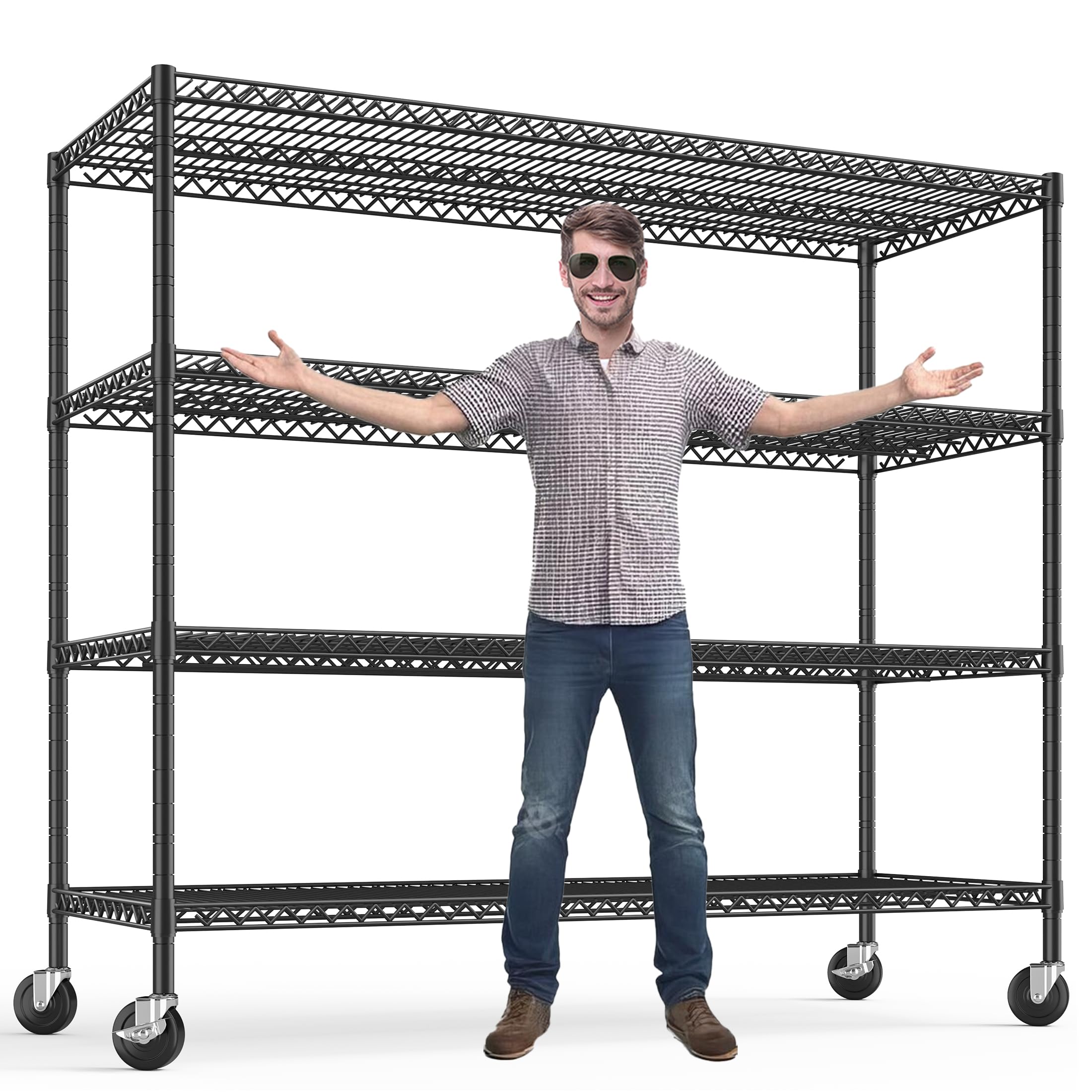 - [3200lbs Capacity Heavy Duty Wire Shelving Unit] Metal Shelving are made of sturdy heavy duty steel wire and 25.2mm diameter metal rods, with extra reinforced support bars on each Shelves of the metal, with a single tier load capacity of 640lbs and a total load capacity of 3200lbs.