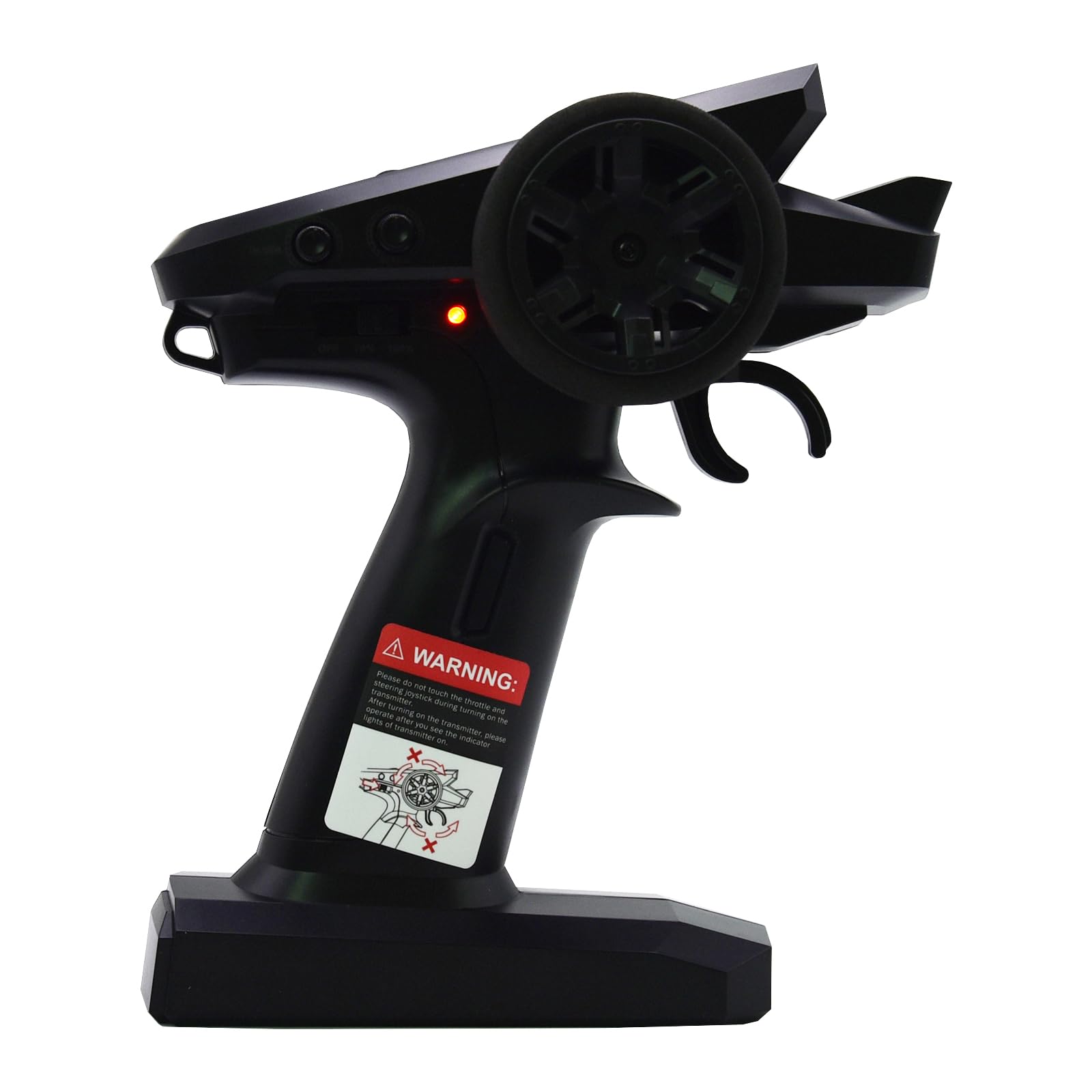 - 4-Channel Radio System: The 2.4GHz transmitters features exclusive cruise control for long-distance treks, and it comes with a drag brake. Set your speed using the transmitter and then use the “TH D/R” knob to fine-tune it faster or slower to match your pace. Lighting buttons can be controlled and winch access buttons are reserved. And support for multiple participants