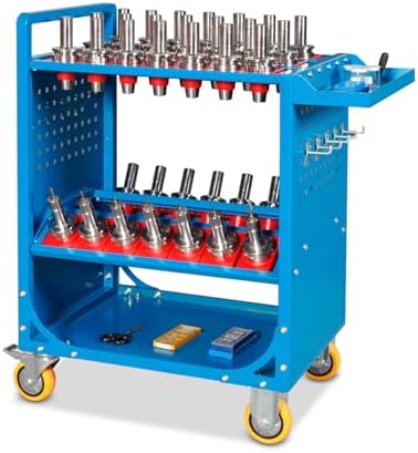 - HIGHER QUALITY: The blue classic CNC tool cart adopts electrostatic spraying technology, and has been pickled and phosphated. The tool holder not only looks high-end and elegant, but is also rust-resistant and wear-resistant. The CNC tool cover is made of new material ABS, which has good cushioning and reduces the impact between the handle and the sleeve. The service life of the tool cart will be greatly improved.