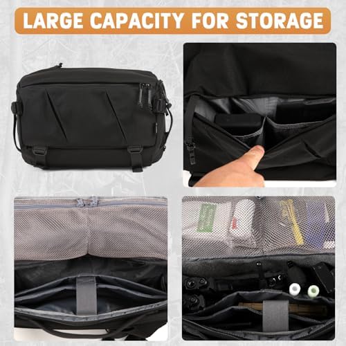 - 【Stealthy Urban Tactical Style】Features low-profile aesthetics that blend seamlessly into city environments while functioning as a concealed carry bag. Versatile as a men's or women's shoulder bag for hiking, camping, or cycling, offering smart storage for tools and gear.