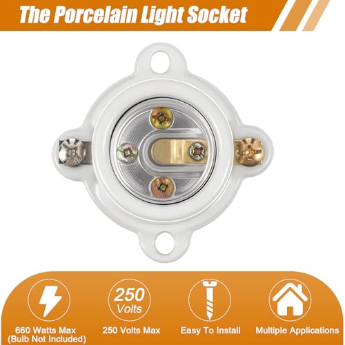 - Nice Performance: with a rated power of 660W and a voltage of 250V, these porcelain lamp holders have nice performance; The precise mechanical design ensures accurate and reliable switching operation and ensures efficient lighting for closets, basements and utility rooms