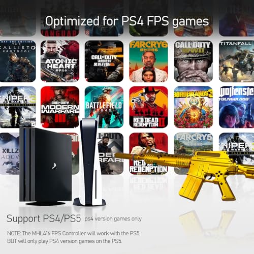 MHL416 Move Controller for PS4 - Wireless Gun Controller with Motion Aim, Authentic Feedback, Move Motion Tech, 1200mAh Battery Share Button, Non-Slip Grip[playstation_4] (Golden)