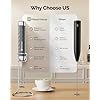 - 【One Charging, 1440 Hours Ready】With a built-in 1200mAh lithium battery, this portable USB-C rechargeable milk frother provides up to 2 months of usage on a single charge(note: if use once per day). Fully charge the battery operated milk foam maker in just 2 hours with the included USB-C cable, eliminating the need for constant battery replacement