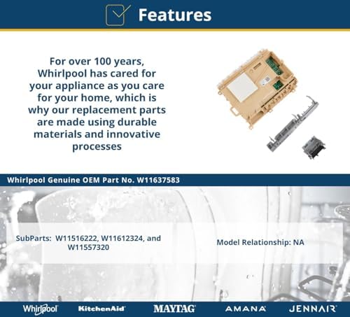 - REPLACEMENT PART NUMBERS: W11637583 Dishwasher Electronic Control Board replaces the part numbers W11516222, W11557320, and W11612324