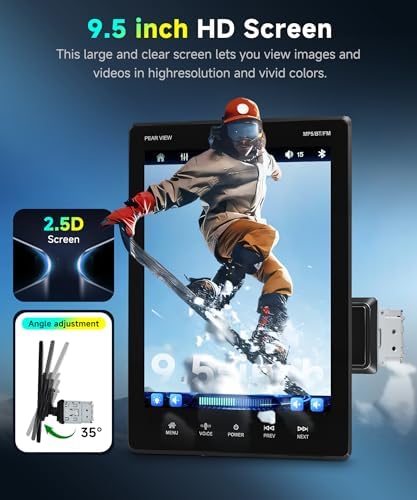 - 【Installation & Single Din Touchscreen】The installation size: 178mm(L)X50mm(H) /7.0(L)X1.97(H)inches.9.5-Inch 1024x600 Single Din Touch Screen Car Stereo: Sleek HD Detachable LCD touchscreen can be installed in both horizontal and vertical screens,and the 35° range can be adjusted front and back.