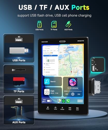 - 【Wired CarPlay & Android Auto】: Single din car stereo featuring wired CarPlay and Android Auto (via USB Cable). Directly access Maps, Music, Calls, and sync apps like Goo-gle/Waze Maps, Spotify, and iTunes. Split-screen functionality lets you enjoy GPS navigation while streaming tunes