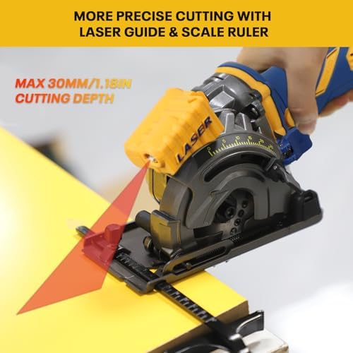 - 【Precise Laser Guide & Adjustable Cutting Depth】 Achieve straight, accurate cuts every time thanks to the bright laser guide and clear scale ruler. Quickly set the cutting depth from 0 to 30mm using the easy-to-read depth scale and lever, ideal for plunge cuts and controlled material removal