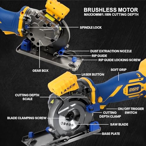 - 【 Complete Cordless Kit &Compatible with DEWALT 20V MAX Battery】 The mini circle saw Comes with 4 ah battery and 1.5A charger,ready to use right out of the box, no extra purchases needed! And The cutting off tool powered by a brushless motor and designed to compatible with DeWalt 20V MAX batteries, offering cordless freedom and leveraging your existing High quality battery investment.