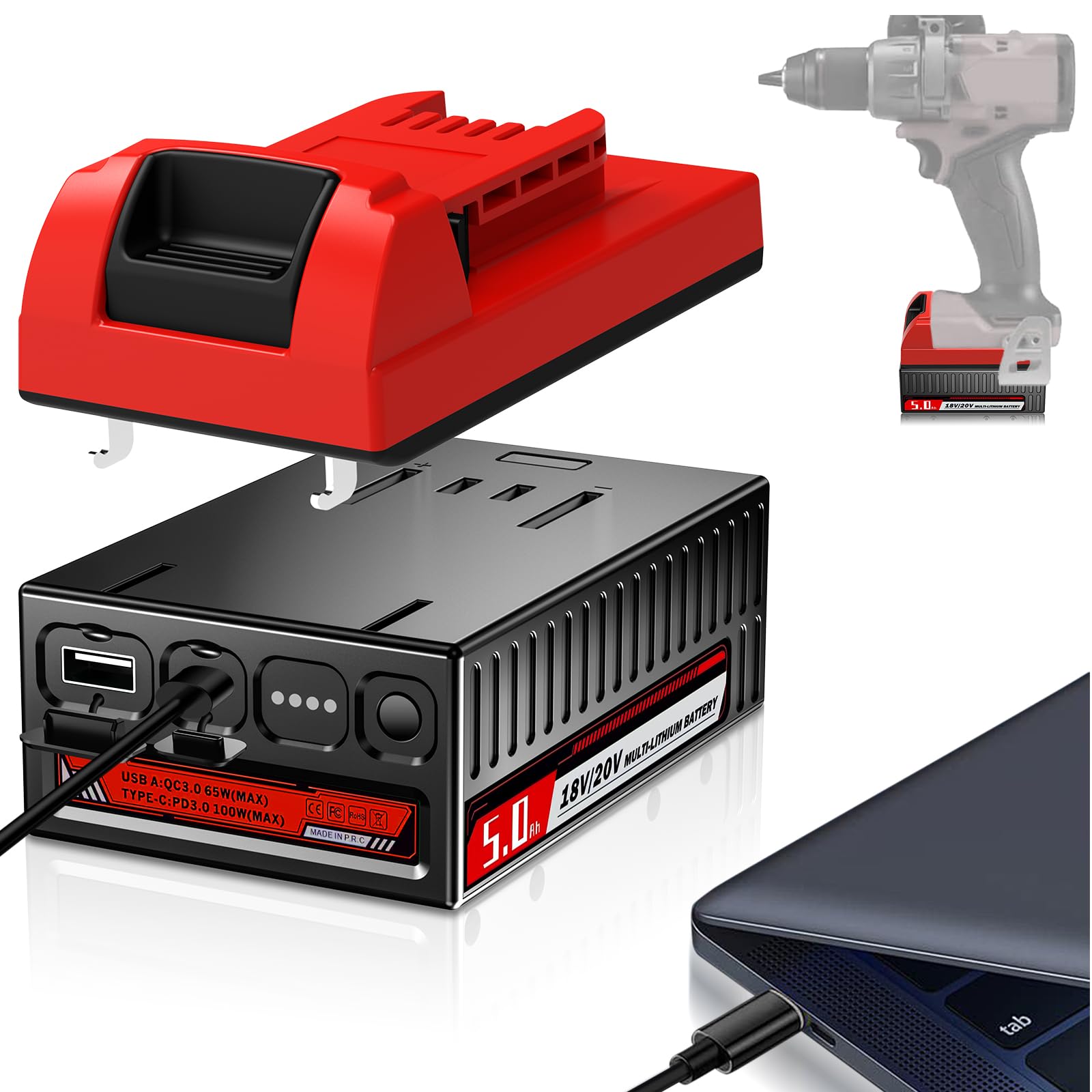 - 【MINI Design】: 1/2 size of the original charger. Save space, this 20V battery charger is very mini, cheap and easy to carry and store.Perfect for saving workspace or tossing into a travel bag.