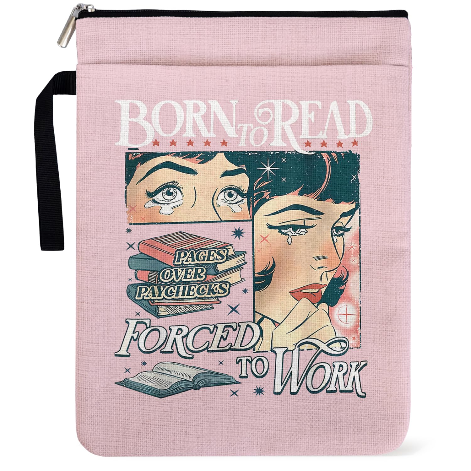 Born to Read Forced to Work Book Sleeve for Book Lovers, Paperback Sleeve for Librarian Lovers Bookish Group Club Gifts for Women, Book Cover with Zipper and Front Pocket for Paperbacks 9 x 12 Inch