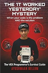 - The "It Worked Yesterday" MysteryWhen Your Code Is Both the Problem AND the SolutionThe VEX Programmer's Survival GuideWelcome to competitive robotics—whereyour code crashes at the worst time, your build team gives you funny looks, your autonomous routine treats walls as a best friend.Inthis book The "It Worked Yesterday" Mystery, Ayushmaan Bellum, a high schooler and Founder, Programmer, Builder, Driver and Captain of Cognitaur 29712C VEX V5 Robotics Competition Team, has you buckling up to cringe, laugh and cry as he shares his sleep-deprived programmer perspective as a seasoned VEX Robotics Competitor. This is not your average coding book — it’s much more than the How-To's of coding guides — it’s part survival guide, part comedy, and 100% the most frustrating and wackily satirical look at the tech world and programmingyou’ll ever find (if not, please take this away from me).Learn from Real-Life Competitive Flops—because otherpeople’s failures are the best lessons.Avoid Championship-Killing Pitfalls —including the notorious “loose screw conspiracy!”Decode the Mysteries of Sensors, Odometry, & Auton Strategies—before they turn against you halfway through a match.Learn to Make Yourself Appear (and Sound) “Smart” to Judges — even while your bot is actively working to ruin yourreputation.Shop the VEX Parts MarketLike a Pro (No Rip-offs Allowed) — and try to get a robot through airport security.Whether you’re a seasoned programmer, or just someone who never programmed robots this book will help you get prepared to enter the crazy and funworld of VEX Robotics. So, get out your duct tape, crank up your batteries and welcome the chaos — because it’s allgoing to be different next season… right?