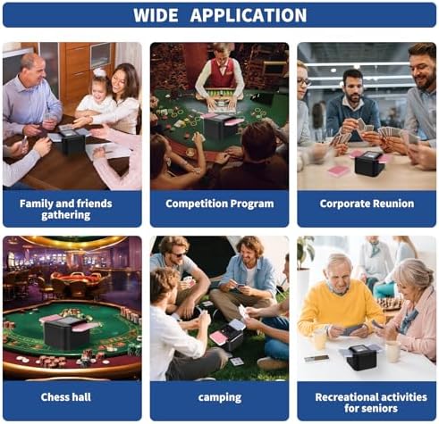 - 【Low Noise and Fast Shuffle】The new upgraded high-speed silent motor will not cause card jamming or misalignment. Avoid the damage of cards due to bending of cards in traditional shuffling methods. The shuffling sound is as low as 50db, allowing you to focus on the game without being disturbed by loud shuffling noise. It only takes 1-2 seconds to shuffle 2 decks of cards, greatly improving the shuffling efficiency. You can better enjoy the home game night.