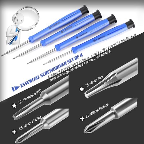 - Magnetic Screwdrivers and Bits - This compact and versatile precision screwdriver repair tool kit comes with a magnetic bit driver that firmly grips all interchangeable bits, making it easy to handle screws during repairs. The 4 precision screwdrivers also feature magnetic tips for effortless repair work.