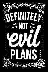 - Ever need a place to jot down your completely harmless plans for world domination, secret recipes, or office meeting notes that are definitely not sinister? Introducing "Definitely Not Evil Plans" — the ultimate lined notebook for masterminds with a sense of humor. This journal is perfect for: Aspiring villains with a to-do list Coworkers who need a laugh Students with a flair for drama Writers, pranksters, or anyone who loves dark humor Whether you're plotting your next big idea or just writing a grocery list that looks suspicious, this notebook makes every note a little more fun. Features: 110 pages of crisp white paper 6" x 9" convenient size Matte paperback cover with a bold, funny design Great gift for birthdays, holidays, or your most devious friend Let your imagination run wild… but remember, it’s definitely not evil. Probably.