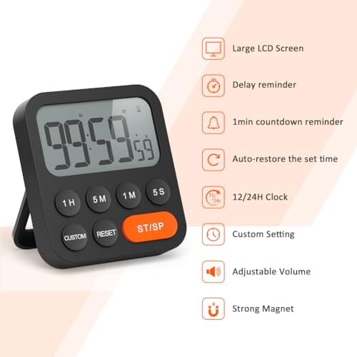 - CUSTOM MODE - Our digital kitchen timer offers a practical custom function. Set the countdown time you want, press and hold the CUSTOM button for 2 seconds, then the timer will remember your settings, every time you press the CUSTOM button, it will automatically switch to the time you set before.