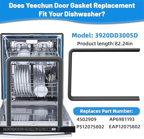 • 【3920DD3005D Dishwasher Door Seal】Our 3920DD3005D gasket door seal uses Thicken magnetic strips, resistant to bending, strong suction for effective sealing and functions the same as original OEM-branded parts, but quality seal better than OEM. This 3920DD3005D dishwasher gasket door seal ensures a secure seal around the dishwasher door, effectively containing water, noise, and heat during operation. The door gasket is 82.24 inches long, helping to prevent leaks throughout the wash cycle.