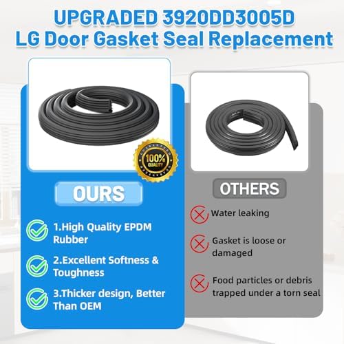 • 【Upgraded 3920DD3005D Door Gasket】3920DD3005D LG Dishwasher Gasket Door Seal is made of High quality EPDM rubber with precision welding process,high temperature welding. Featuring corrosion resistence, high elasticity and flexibility, can quickly return to its original state after deformation.
