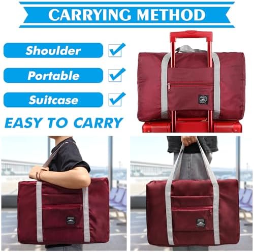- Easy to Transport: The travel bag can be placed on the handle of the luggage compartment. Just put the handle of the luggage through the outer pocket of the travel bag, and it can be firmly placed on the luggage, which can reduce the pressure of carrying items. The size of the travel bag can be carried on the plane without paying for luggage.
