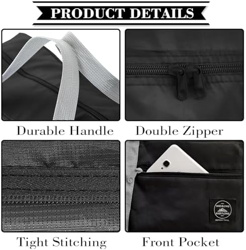 - High Quality: The foldable travel bag is made of waterproof nylon material with double zippers, which is easy to open and close. The stressed part is reinforced with double stitches, which can bear a variety of items.
