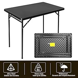 FROASISPRO Folding Table 3ft Rectangular All-Occasion Plastic Folding Event Table for Indoor and Outdoor, Portable Desk, Camping, Durable and Stable, HDPE and Steel, Wide Application, Black