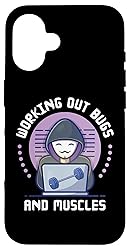 Funny tech and fitness mashup design featuring a hacker, surrounded by gym gear and bugs, with the phrase “Working Out Bugs & Muscles”. Great gift for software developers, bug fixers, fitness geeks, gym rats, IT professionals, and tech-savvy workout lovers. Two-part protective case made from a premium scratch-resistant polycarbonate shell and shock absorbent TPU liner protects against drops Printed in the USA Easy installation