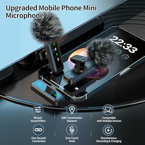 - 【Lavalier Microphone】This social media video recording kit comes with a receiver and two microphones, providing professional recording output to ensure clear audio during interviews. It is plug-and-play and no app is required. It takes about 2 hours to fully charge and can last for 11 hours. The receiver supports Type-C port and comes with a Lightning adapter. The recording distance can reach 66 feet, which is very suitable for interviewers and content creators.