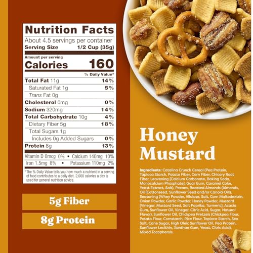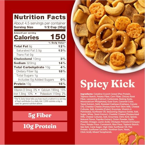 - Crunchy & Satisfying: A nutrient-dense mix of chickpea pretzels, cashews, almonds, and protein-packed cereal, offering a bold crunch without cheap fillers or additives.