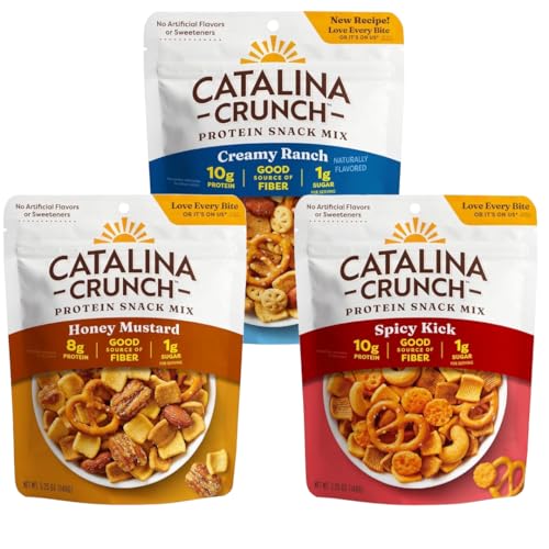 Catalina Snack Mix | 3 flavors | Spicy Kick | Honey Mustard | Creamy Ranch | 1g Sugar per Serving - Good Source of Fiber, Keto, Gluten Free | Pack of 3 |