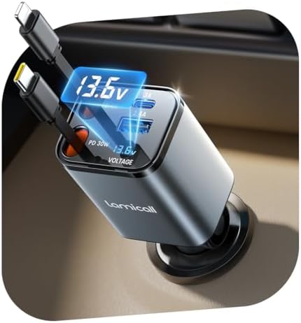 Lamicall Retractable USB C Car Charger, 69W [Upgrade-Compact] 4 in 1 Car Phone Charger Adapter with Bult in 31.5in Retractable Cable for iPhone 17/16/15/14/13/12/11, Galaxy, Pixel, Airpods