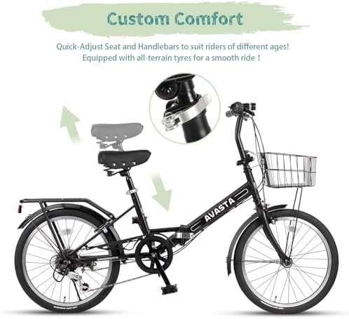 AVASTA Quartet 20 Inch Folding Bike with 7-Speed, Dual C-Brake, Fender, Rear Rack and Bicycle Basket, Mutiple Colors