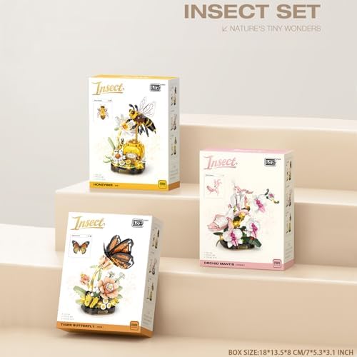 - Exquisite and Unique Shape: Cute and exquisite insects paired with beautiful flowers,creating an atmosphere that is free and dreamy.The insect flower building block is rich in details.Each building block set comes with a science popularization card that details the characteristics of insects. You can use the building blocks to stand it up, which is very special.Not only a toy, but also a tool for learning insects.