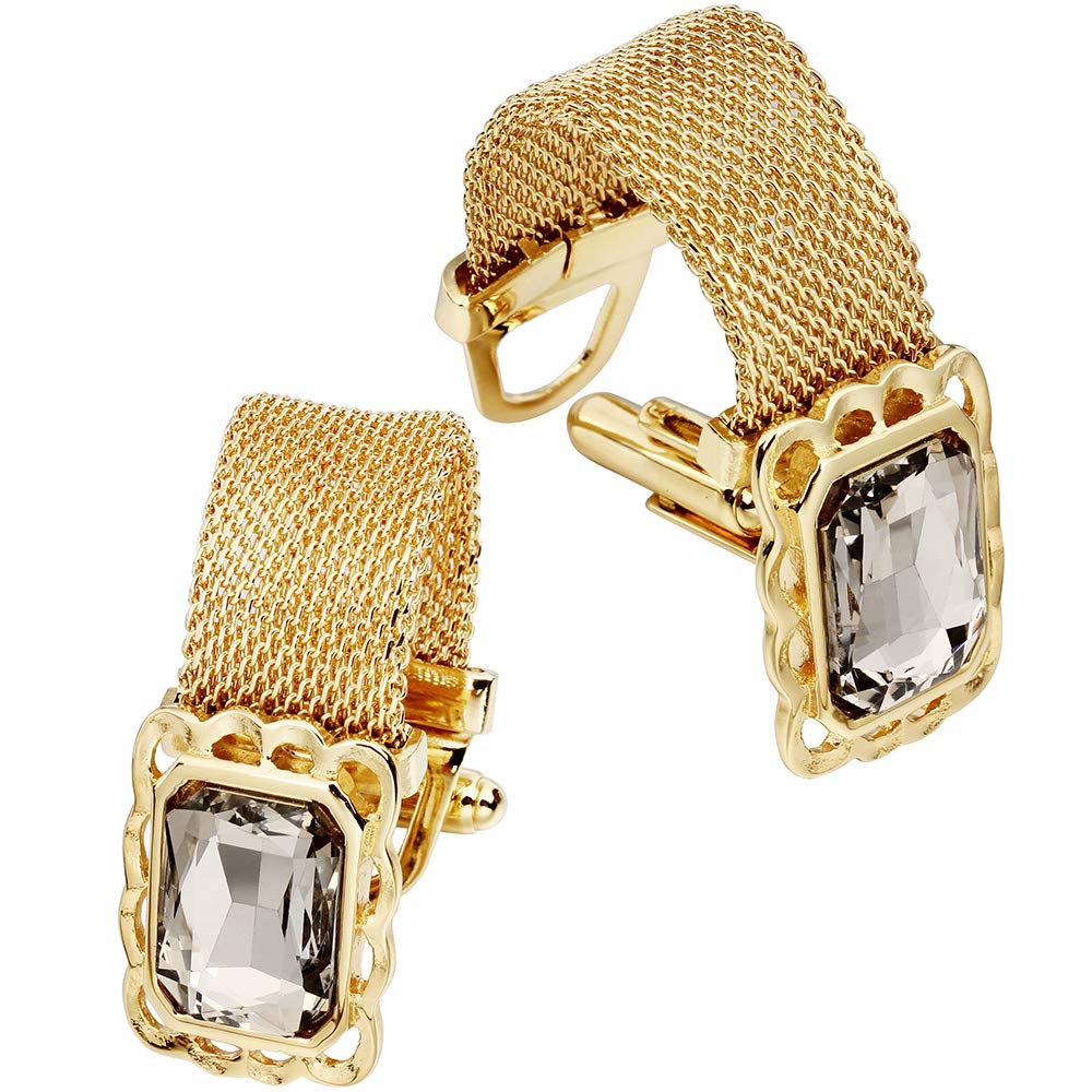 Cufflinks for Men Gold Diamond Crystal Cuff Sparkle Diamond Gold Ornate Cufflinks Mens Formal Wedding Business Cufflink Luxurious Gorgeous Cuff Links French Shirt Groom Husband Gifts
