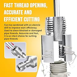 【Dual-Function Threading – One Tool, Double Efficiency!】:Say goodbye to tool-switching hassles! Our threading tool effortlessly creates both internal and external threads in one go. Available in 1/2" or 3/4" sizes for the perfect fit, it ensures fast, precise pipe prep every time 【Universal Pipe Compatibility】:Whether you're working with PPR, PVC, plastic, or MPP pipes, this tool delivers flawless results. Perfect for plumbing repairs, DIY upgrades, and electrical conduit installations—versatility at its best 【Heavy-Duty Alloy Build】:Forged from high-hardness 40Cr alloy steel, our threader stays sharp and precise through heavy use. Enjoy stable threading with zero slippage or misalignment—engineered for perfection 【Flawless, Leak-Free Threads】:Razor-sharp cutting edges produce clean, tight threads that minimize leaks and maximize flow efficiency. Spend less time fixing mistakes and more time getting the job done right 【Lightweight & Portable – Take It Anywhere】: The lightweight carbon steel construction makes this threaded tool easy to carry, especially suitable for home repairs or outdoor projects. However, please note that it is not applicable to metal pipes