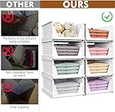 Stackable & Slide-Out Design for Easy Access Each basket features built-in slide rails, allowing you to easily pull out the drawer-like bin even when stacked. Perfect for organizing closets, shelves, or cabinets without removing the entire box. Foldable for Compact Storage The baskets fold flat in seconds when not in use, saving up to 80% space. Ideal for seasonal storage or moving between rooms, dorms, or small apartments. Durable & Breathable Plastic Construction Made from sturdy, high-quality PP plastic with ventilated holes to keep items fresh and dry. Easy to clean and resistant to wear and deformation. Multi-Purpose for Home Organization Use it in the bedroom for clothes and socks, in the kitchen pantry for snacks and cans, or in the kids’ room for toys and books. A versatile storage solution for every corner of your home. Large Capacity & Modern Look Each bin measures 14"x17"x5.5" (approx. 33x43x14cm), offering ample space for folded clothes and more. The sleek white finish blends with any home décor.