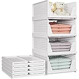 - Transform your closet chaos into organized bliss with these versatile stackable storage baskets. Each unit measures 14 x 17 x 5.5 inches, providing ample space for clothes, accessories, toys, or pantry items. The innovative slide rail design allows for smooth access to your belongings, while the perforated sides ensure proper ventilation. These white organizer bins feature a sturdy plastic construction that's built to last, and their stackable nature helps maximize vertical space usage. When not in use, the foldable design allows for compact storage. The modular system lets you customize your storage solution - stack them high or arrange them side by side to fit your space perfectly. Perfect for bedrooms, closets, laundry rooms, or any area needing organization, these bins help create a clean, streamlined look while keeping your items easily accessible. The generous dimensions accommodate folded clothing, linens, or various household items, while the open-front design allows you to quickly identify contents. Whether you're organizing seasonal clothing, daily essentials, or decluttering your space, these storage baskets provide a practical and efficient solution.