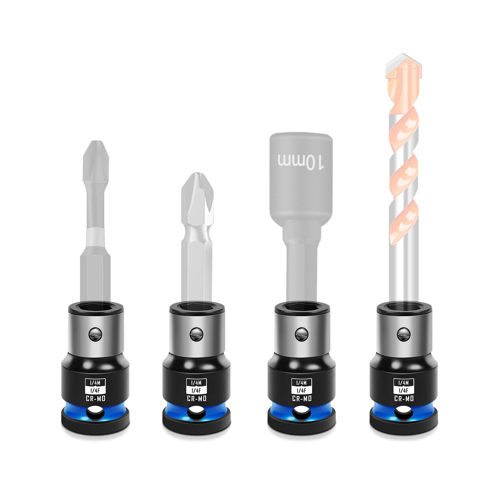- 【Complete 16-Piece Impact Swivel Socket Set】 Features essential 5-15mm metric swivel sockets (5, 5.5, 6, 7, 8, 9, 10, 11, 12, 13, 14, 15mm) - covering the most common fastener sizes without gaps. Plus: 2" & 6" extension bars, a 1/4" to 1/4" drill bit adapter, and a 3/8" to 1/4" impact socket adapter for expanded versatility.
