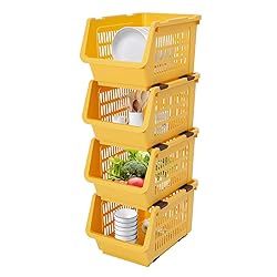 4-Pack Stackable Plastic Storage Baskets - Open Front Organizer Bins for Kitchen, Pantry, and Bathroom Essentials (Yellow)