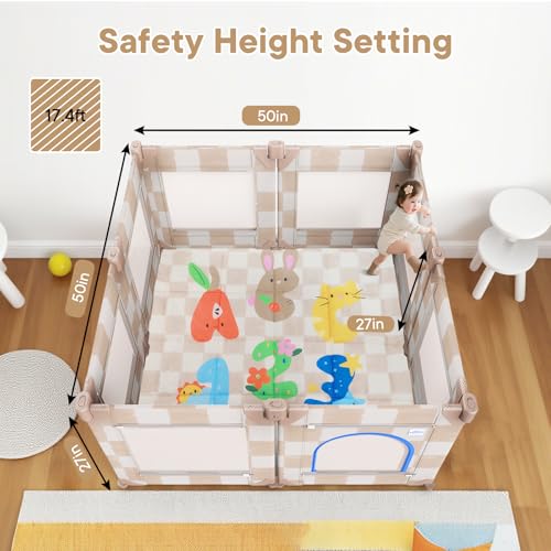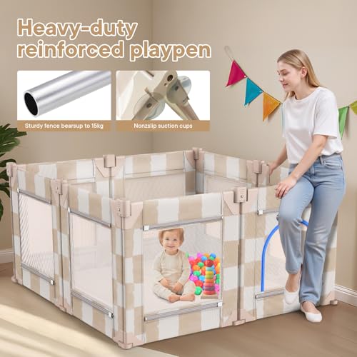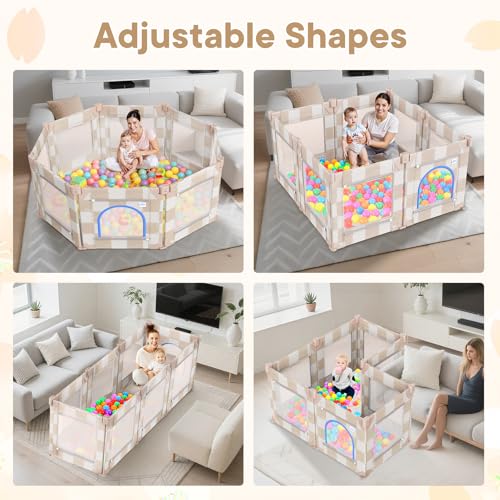 - 360° Vision & Gap-Free Design: Our play yard for baby features 360° full-vision mesh panels, letting you keep an eye on your baby—ideal for 6-12 month babies learning to crawl or stand—whether you're in the kitchen, living room. It corrals toys in a designated area for easy parental organization and tidying