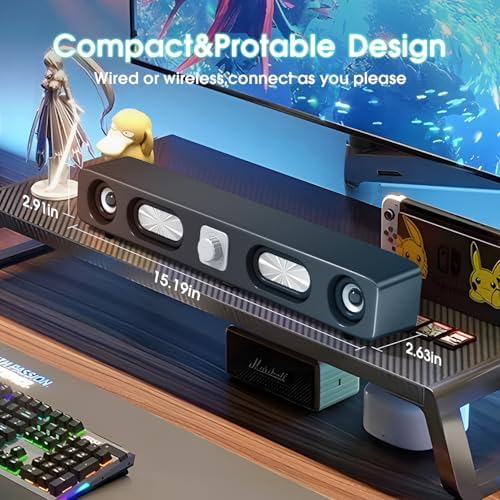 - 【HiFi Sound Quality Stereo Sound】The PC speaker uses upgraded 2x3W technology to deliver the clear sound. The soundbar speaker can enhance your listening experience when you enjoying indoor movies, videos, music and games.(Note:not supported PS4,PS5)
