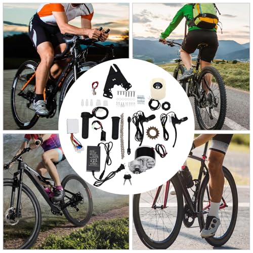 Electric Bicycle Motor Kit, 24V 250W E-Bike Conversion Kit for Chain Drive, 330rpm Electric Gear Bicycle Rear Derailleur w/Brushed Controller&Light&Key, Mid Installation Kit for Most Bicycles