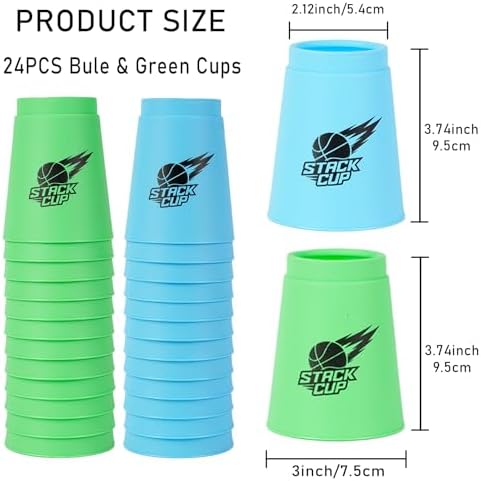 SEISSO Quick Stack Cups, 24PCS Stacking Cups Training Game for School Family Party, Kids Gifts Starter Set of Stacking Cup,Blue & Green