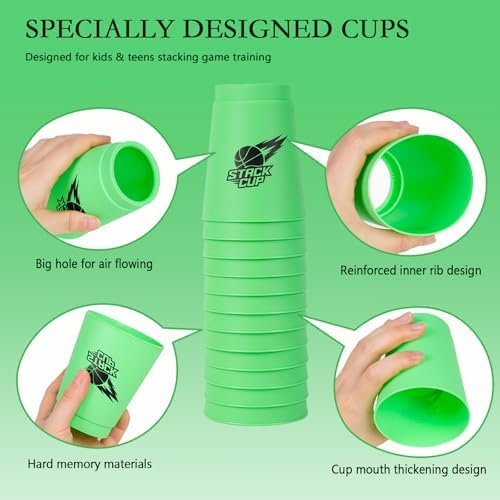 - 24PCS CUPS STACKING SET: This stacking cups set include 12pcs blue stacking cups and 12pcs green stacking cups. Excellent for working on hand-eye coordination as well and helping train the brain for sports and other activities.