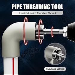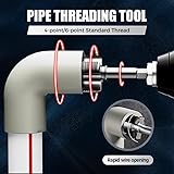 【Dual-Function Threading】Take the hassle out of pipe threading with this dual-function rethreading tool designed for convenience and versatility. Thread both the inside and outside of pipes using a single tool—no swapping required. Whether you're working on a quick repair or a new installation, simply select the appropriate head (1/2" or 3/4") and get the job done faster and more accurately. 【Universal Pipe Compatibility】Designed for PVC, PPR, plastic & MPP pipes, this integrated internal & external pipe threading tool is a must-have for plumbers & DIYers.Make your installations and repairs faster, more accurate and more professional, or electrical conduits—no extra tools required! Seamless threads for leak-free connections, this is the ultimate solution for any plumbing project. 【Durable Carbon Steel Construction】Our Pipe Thread Cutting Tool made of high-quality carbon steel, this pipes thread cutting tool offers exceptional strength and durability. Precision-engineered for smooth, wobble-free threading—no slipping, no misalignment, these pipe thread cutting tools ensure precise and efficient pipe threading. 【Reliable Performance】The thread design creates a secure, leak-free connection between pipes or fittings, providing reliable performance in plumbing, construction applications.No rework! Maximize water flow and save hours of frustration with flawless pipe connections. 【Ideal for Professional and DIY Plumbing Projects】Whether you're a DIY enthusiast or a professional plumber, the pvc thread maker tool included in this pvc pipe threading plumbing kit is an essential addition to your toolkit, streamlining the process of threading pipes and enhancing your work efficiency.